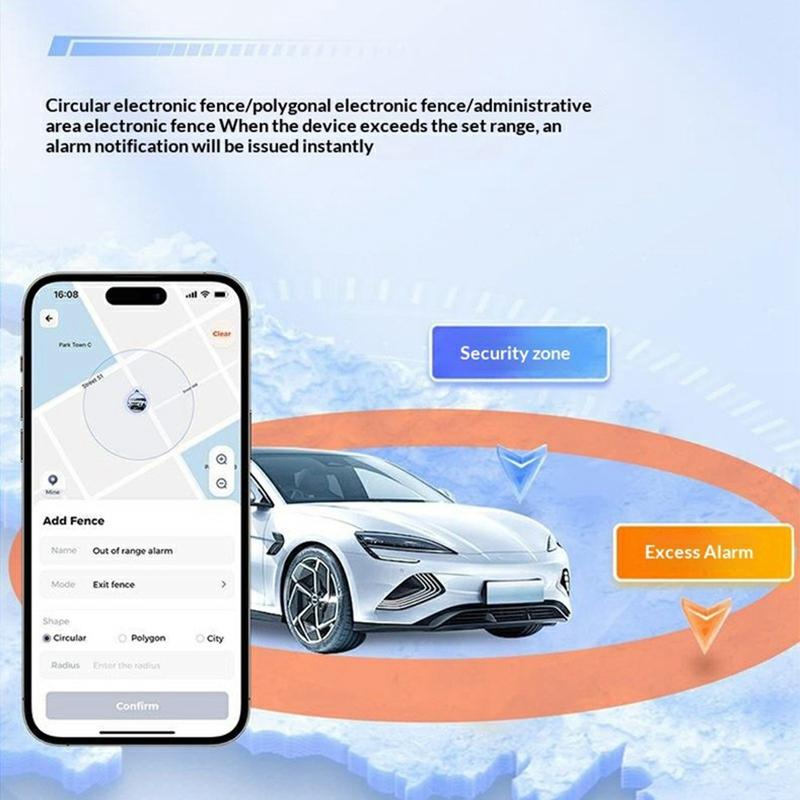 - Tyverisikringsfunksjoner: geofence, vibrasjons-/forskyvningsvarsler, hastighets- og offline-alarmer, sabotasjevarsler