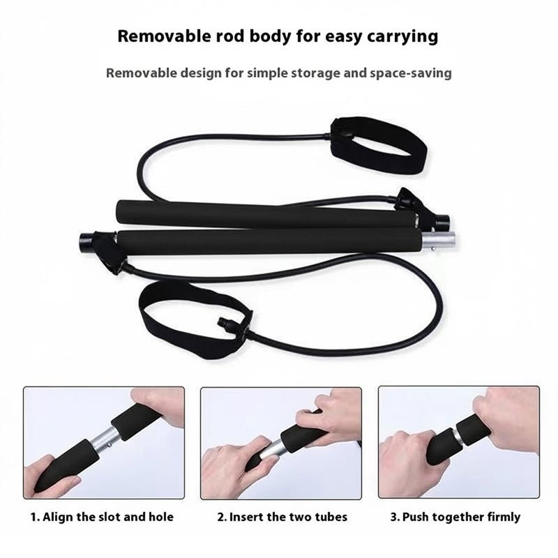Pilates-stang med motstandsbånd - avtakbar styrketrenings- og tøyningsstang, 91cm, sklisikkert NBR-grep, roterende kroker