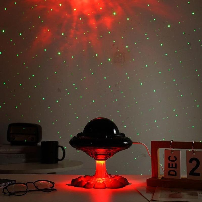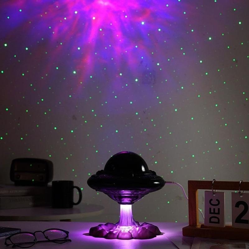 Plass UFO stjernehimmel tåke projeksjonslampe - soverom nattlys atmosfære projektor