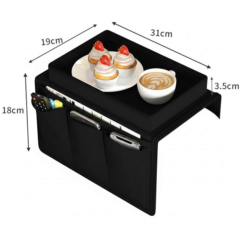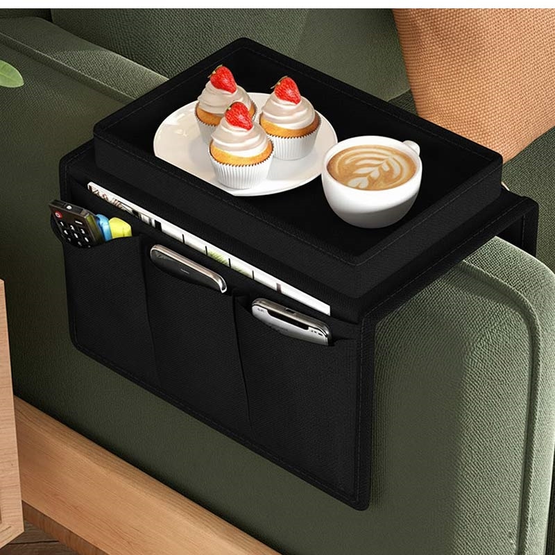 Den plassbesparende Sofa Armrest Organizer er en smart og praktisk måte å holde orden i stuen på ved å oppbevare dagligdagse ting rett ved siden av deg. Den er laget av slitesterkt oxford-stoff som er støv- og slitesterkt, noe som sikrer langvarig bruk uten å miste formen. Det forsterkede midtbrettet er laget av oxfordstoff og papp og gir stabilitet samtidig som det holder orden på tingene.