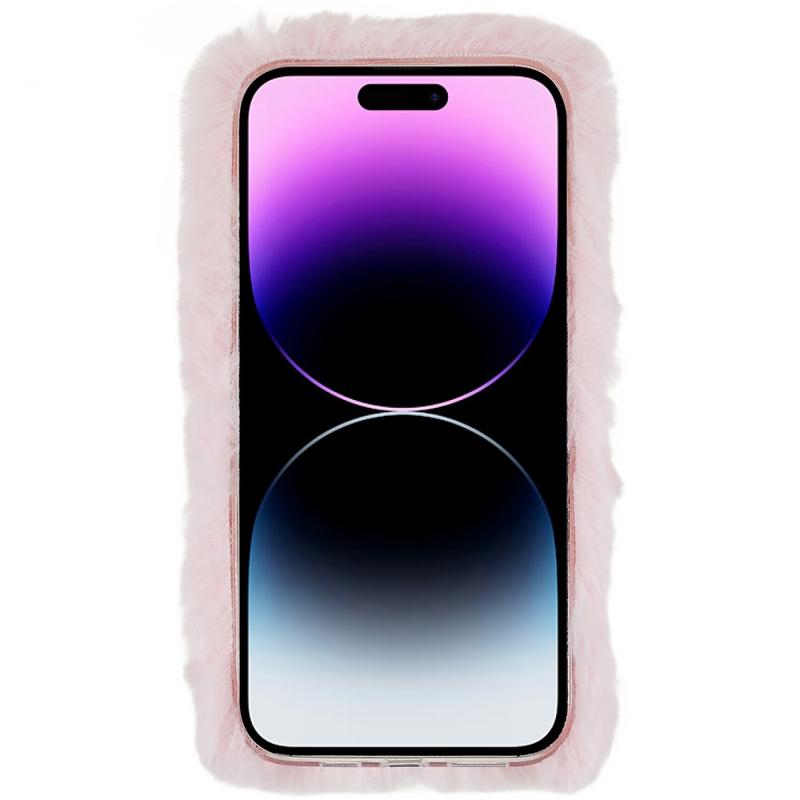 For iPhone 14 Pro Cute Love Heart Design Fluffy Plush TPU-Dekselet Fleksibelt bakdeksel til mobiltelefon