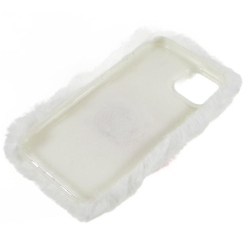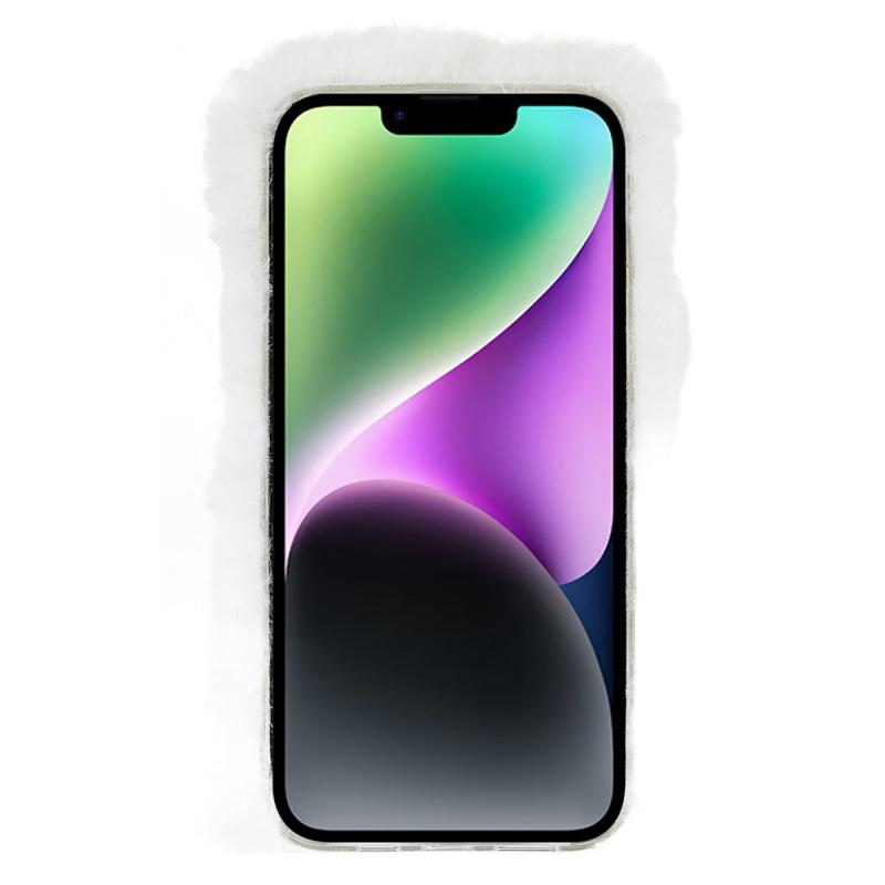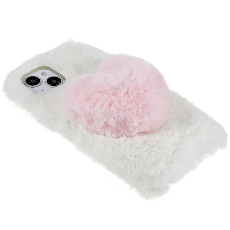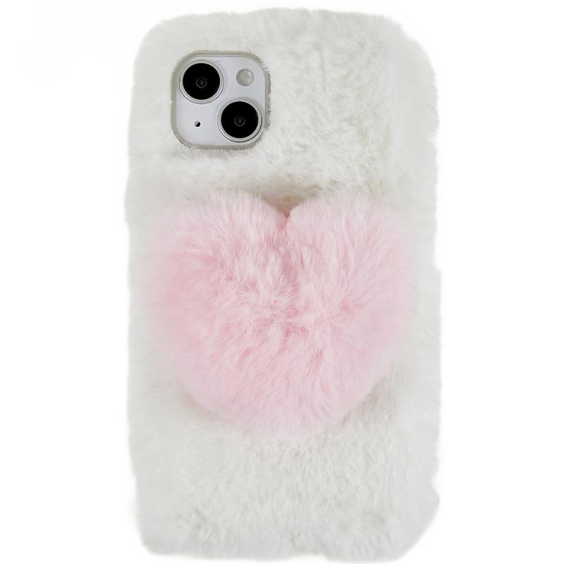 For iPhone 14 Plus Fluffy Plush Myk TPU-telefonveske Cute Love Heart Design Anti-ripe Anti-drop bakdeksel