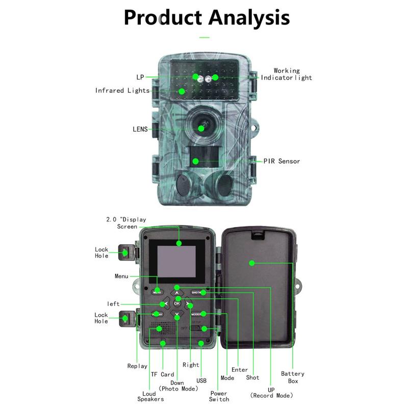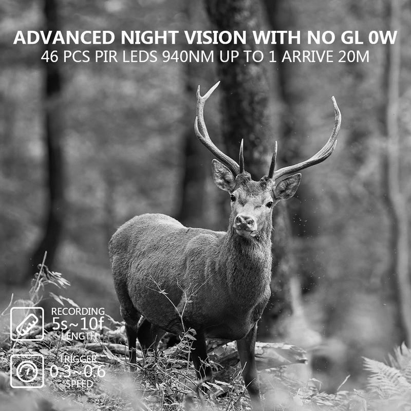 - Avansert nattsyn - Utstyrt med 46 infrarøde lysdioder (940 nm bølgelengde) som gir opptil 20 meters nattsynlighet uten å forstyrre dyrelivet.