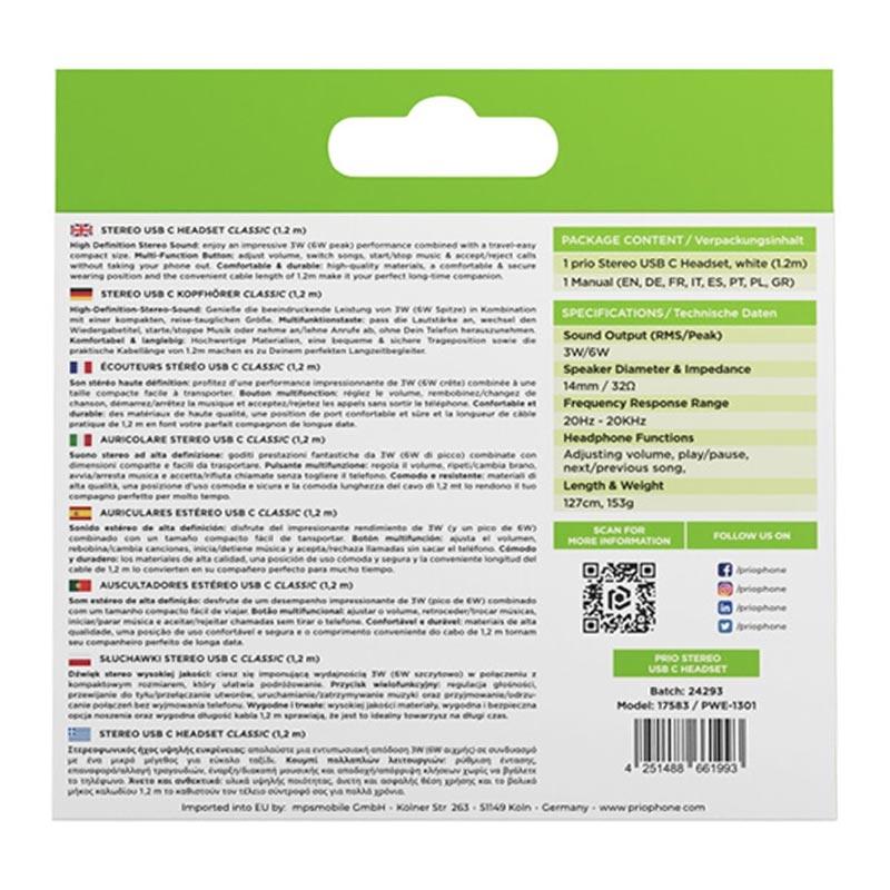 Prio Classic In-Ear USB-C Hodetelefoner med Mikrofon