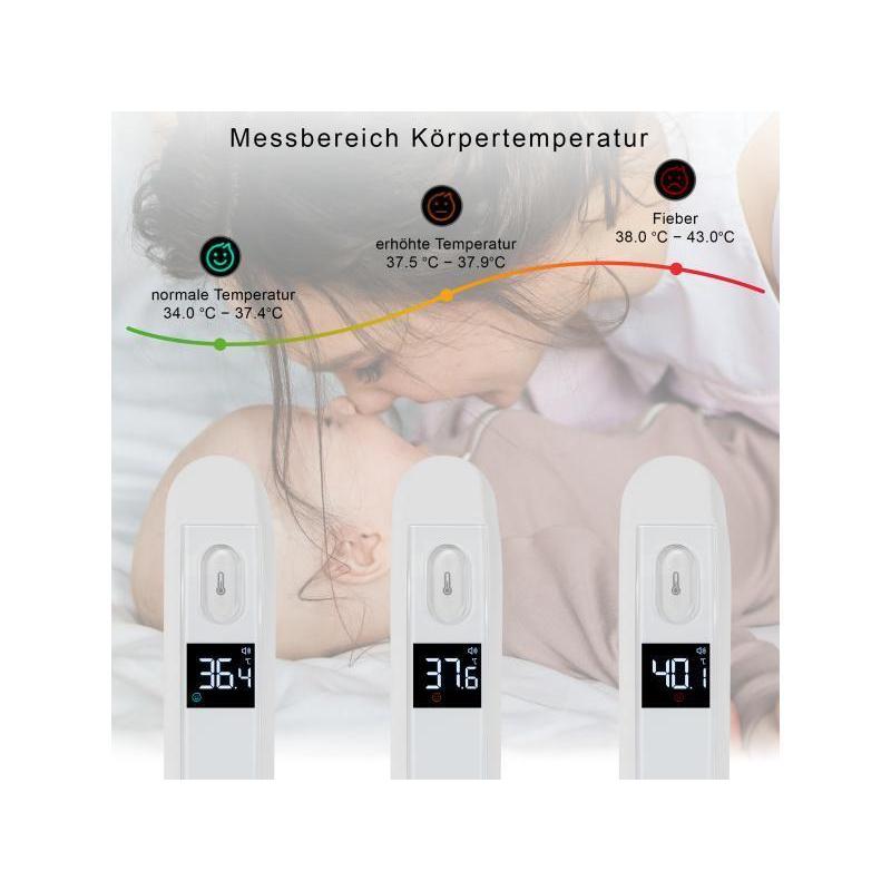 Dette pannetermometeret er uunnværlig for foreldre og omsorgspersoner som ønsker en pålitelig og hygienisk måte å overvåke kroppstemperaturen på. Med kontaktløs betjening, raske resultater og brukervennlig design gir det trygghet uansett om du er hjemme eller på farten. Den 3-fargede feberindikatoren og lydløs modus gjør den spesielt nyttig for overvåking om natten uten å forstyrre søvnen.