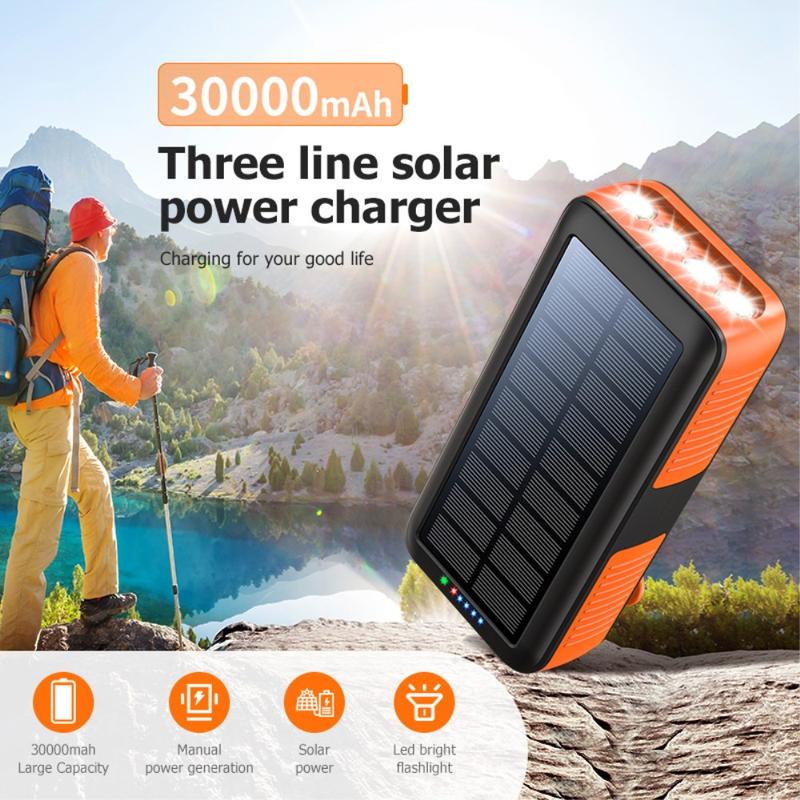 Denne alt-i-ett-strømbanken utmerker seg med allsidighet og robusthet. Enten du camper utenfor strømnettet eller opplever strømbrudd, fungerer solcellepanelet og håndsveiven som pålitelige ladestøtter. De integrerte kablene eliminerer behovet for ekstra ledninger, mens den robuste kapasiteten på 30000mAh gir deg trygghet når du er langt unna en stikkontakt. Det er en praktisk løsning for reisende, friluftsentusiaster og alle som ønsker å være forberedt.