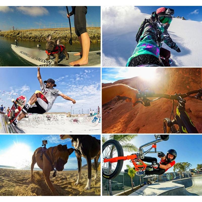 Kompatibel med GoPro Hero-serien og andre actionkameraer som bruker standard GoPro-stil monteringer. Ideell for aktiviteter som surfing, sykling, ski, skateboarding, snorkling, fotturer og mer.