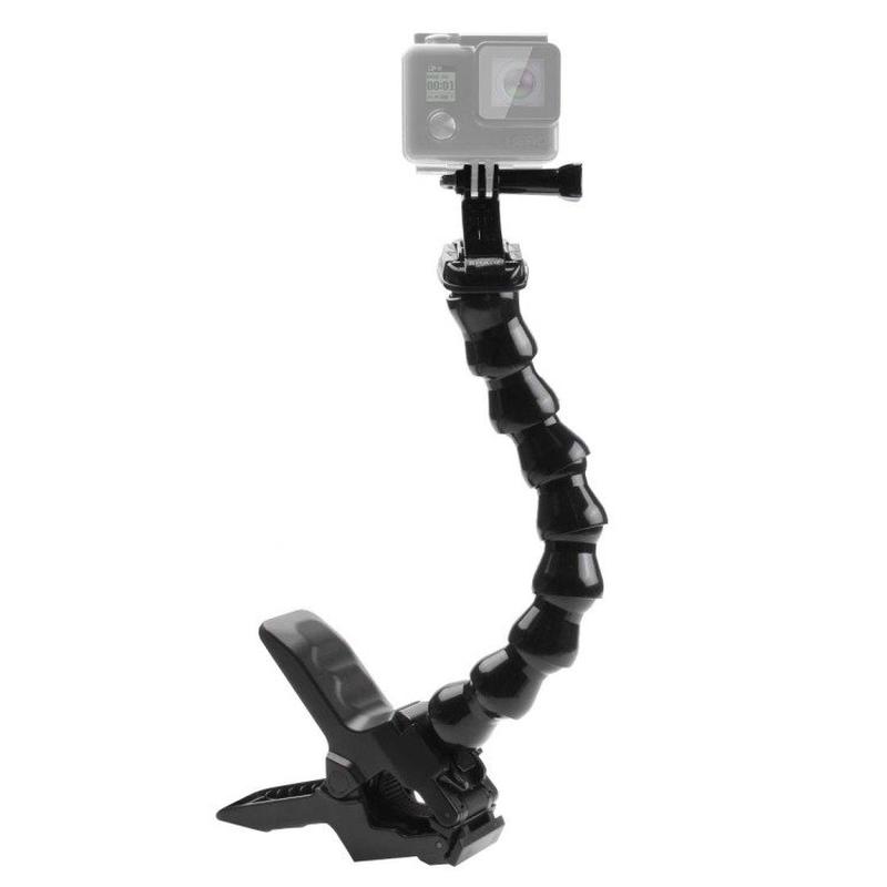 Med holderen kan du montere sportskameraer av typen GoPro eller Osmo Action. Den er utstyrt med en sterk lås som holder gjenstander sikkert fast og gjør det mulig å klemme den fast på ting som ikke er tykkere enn 6 cm. Skaftet er konstruert av segmenter som gjør det enkelt å justere kameraet etter dine behov.