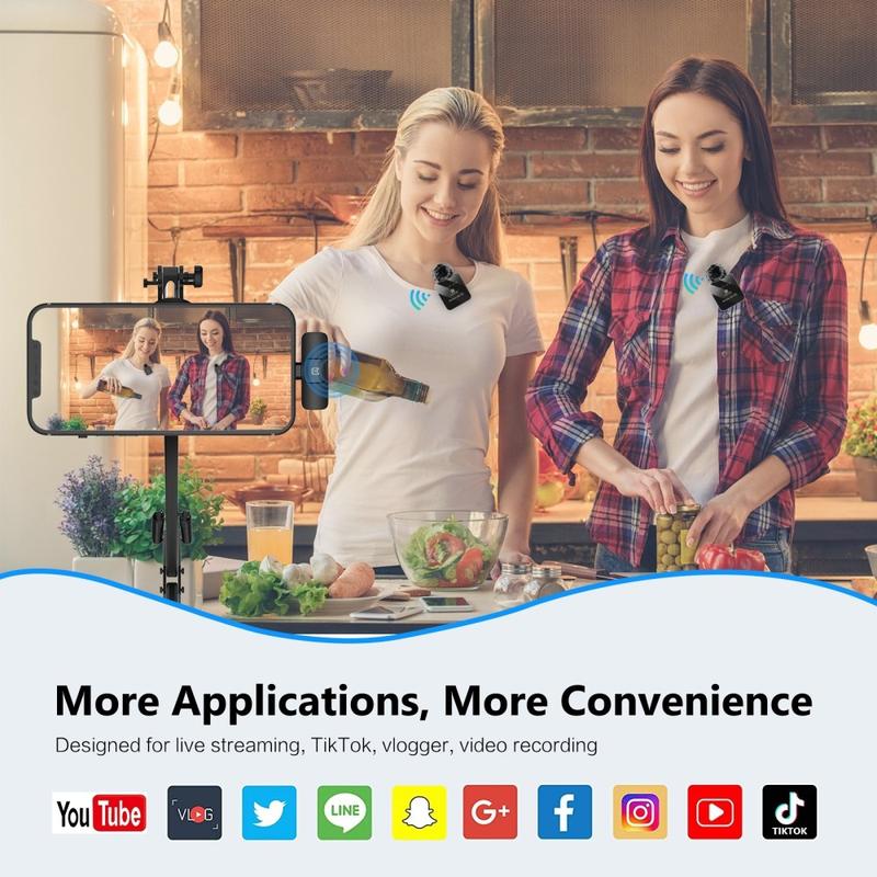 Oppsettet med to mikrofoner er spesielt nyttig når to talere må tas opp samtidig, noe som gjør det ideelt for dialogbaserte videoer, intervjuer, podcaster, nettundervisning og samarbeid om innholdsproduksjon. Ytelse med lav latens bidrar til å holde lydopptaket jevnt og naturlig, mens den innebygde ENC-funksjonen reduserer bakgrunnsstøy for klarere tale i hverdagsmiljøer. Funksjoner som Bluetooth-kompatibel modus, støtte for smart demping og forbedring av etterklang gir også ekstra fleksibilitet for mer kreativ bruk av lyd.
