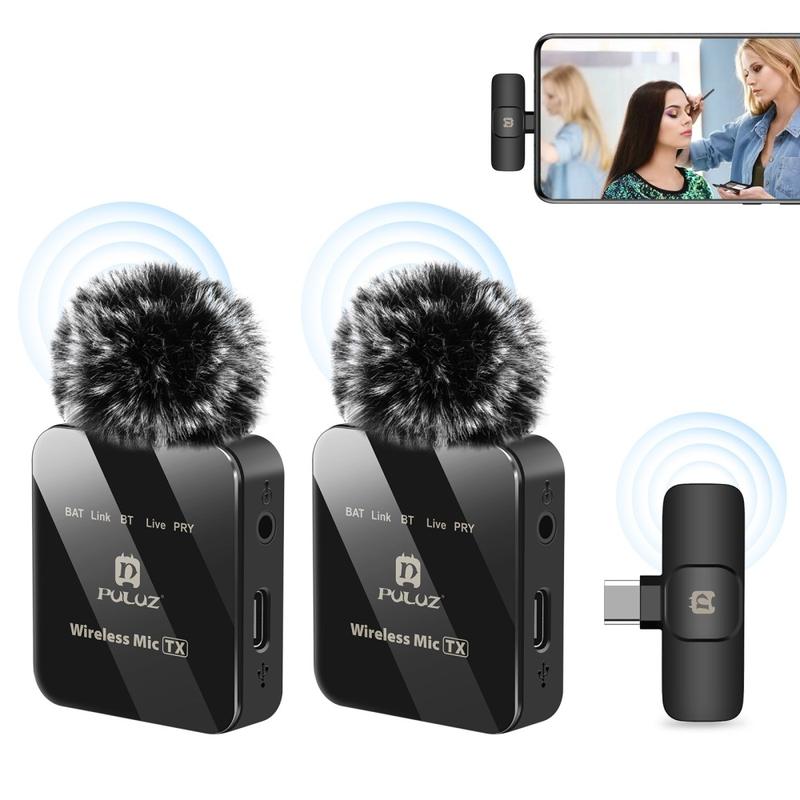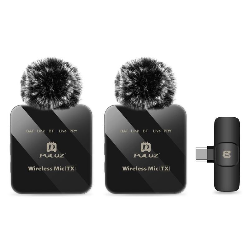 Puluz PU648B trådløs lavaliermikrofon med to kanaler, Type-C-mottaker, ENC-støyreduksjon og 48 kHz lyd