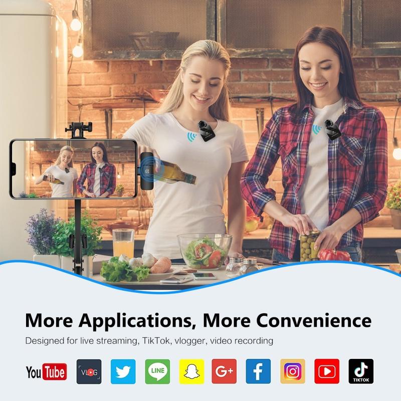 Designet med to mikrofoner gjør dette systemet spesielt nyttig når to talere må spilles inn samtidig uten å dele én mikrofon. Type-C-mottakeren støtter praktisk bruk med kompatible smarttelefoner og enheter, mens tilkoblingen med lav forsinkelse bidrar til å holde lydopptaket jevnt og naturlig. Innebygde funksjoner som Bluetooth-kompatibel modus, støtte for smart demping og forbedring av etterklang gir ekstra kreativ fleksibilitet for brukere som ønsker mer enn grunnleggende stemmeopptak.