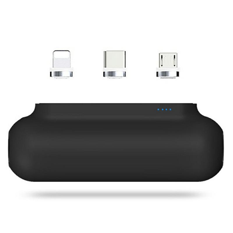PUP-0373-V2 Mini Powerbank 3200mAh - bærbar lader med magnetiske Lightning + Micro-USB + USB-C-kontakter, LED-batteriindikator