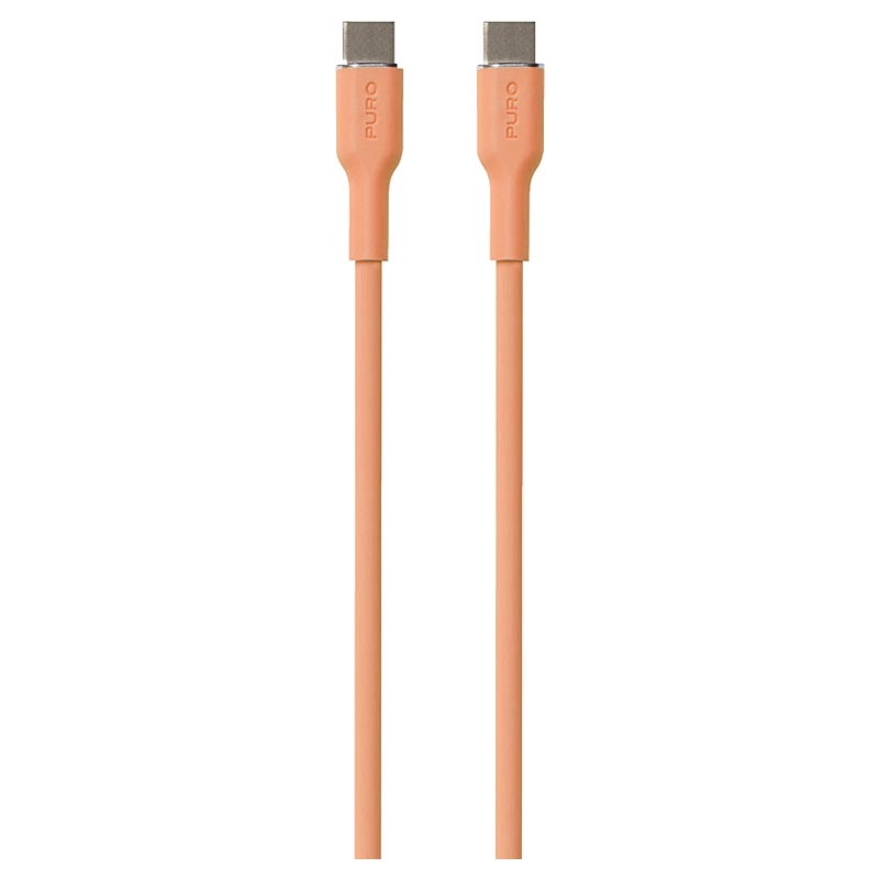 Myk kabel med to USB-C-kontakter laget av myk silikon i fargen Apricot (oransje).