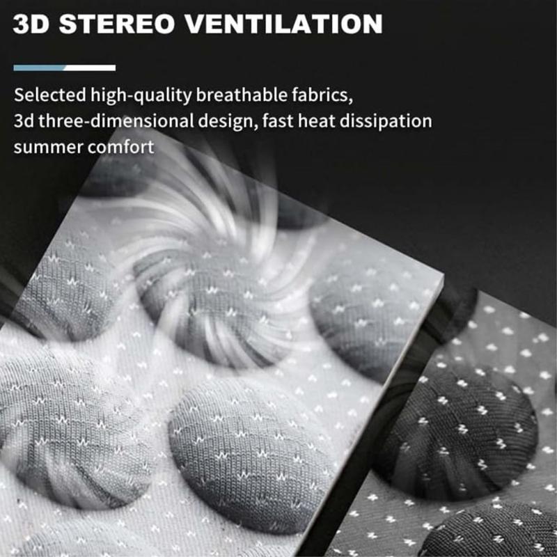 - 3D-ventilasjonsstoffene er utformet for å skape mikro-luftkanaler, noe som reduserer varmeopphopning under kroppen.