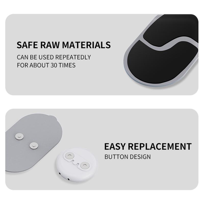 De gjenbrukbare elektrodeputene er designet for gjentatt bruk og festes med et praktisk magnetisk system for rask utskifting. Deres svettebestandige overflate bidrar til daglig komfort, mens det kompakte ladeetuiet holder begge massasjeenhetene ladet og beskyttet mellom øktene. Med opptil 27 timers total batterilevetid fra ladeetuiet er denne bærbare massasjeenheten godt egnet for reiser, pauser på kontoret og daglige restitusjonsrutiner.