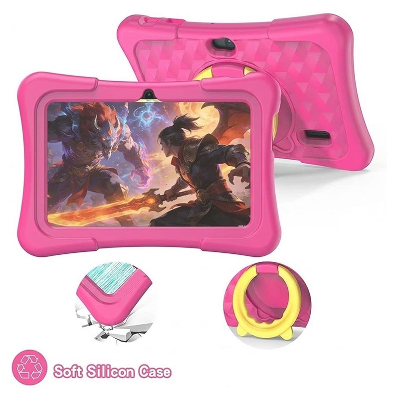 Det barnevennlige beskyttelsesetuiet beskytter enheten mot fall og støt, mens det integrerte stativet gjør det mulig å se tegneserier, læringsvideoer eller videosamtaler uten å holde enheten. Med to kameraer og innebygd WiFi-tilkobling kan barn ta bilder, ta opp videoer og holde kontakten med familien gjennom enkel videochat.