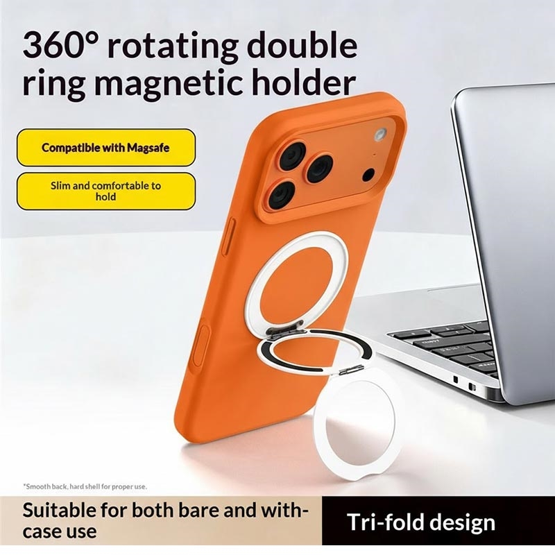 Det ultratynne magnetiske ringstativet Q11 er et elegant grep og stativ som er designet for fleksibel hverdagsbruk uten å ta for mye plass. Med en tredobbelt foldestruktur kan den brettes sammen kompakt når den ikke er i bruk, mens 360°-rotasjonen gjør at du raskt kan justere mellom stående og liggende visning. Den selvklebende baksiden gjør monteringen rask og sikker, og den innebygde magneten gjør den kompatibel med magnetfester og tilbehør.