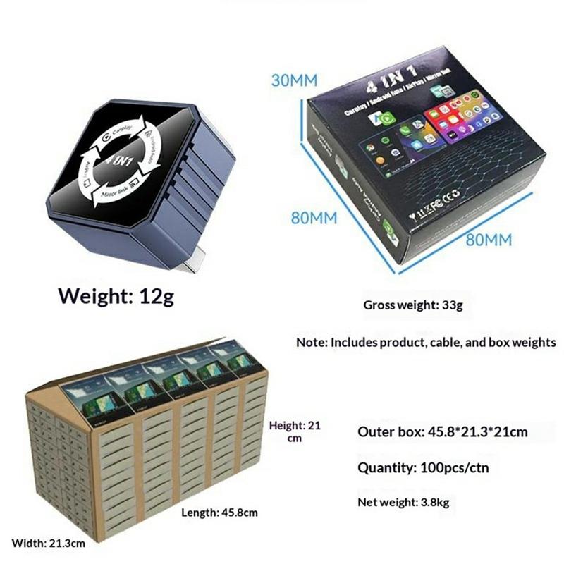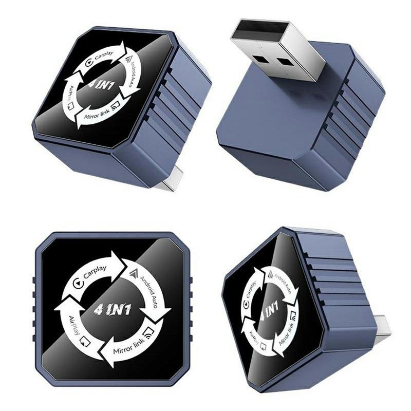 Q1BVS 4-i-1 trådløs Android Auto/CarPlay-adapter med støtte for AirPlay og MirrorLink