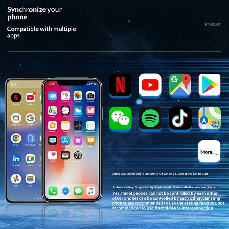 Med Bluetooth 4.2 og dual-band WiFi gir den en stabil tilkobling for daglig kjøring. Plug-and-play-designet gjør oppsettet raskt, og når den er tilkoblet, fungerer den med bilens originale kontroller, berøringsskjerm og mikrofon for en mer sømløs opplevelse i bilen.