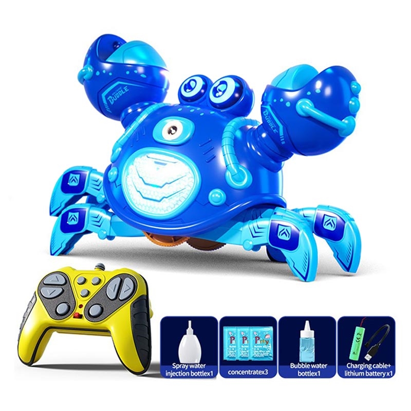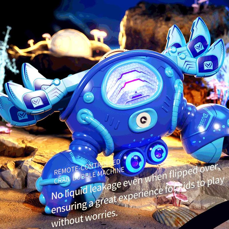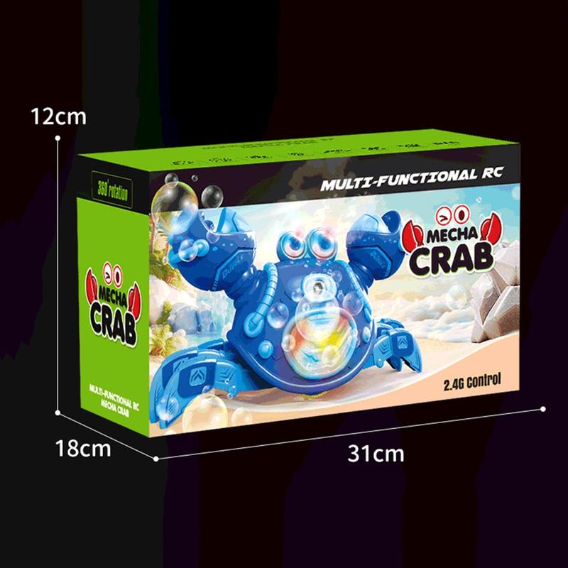 Med støtte for 2,4 GHz fjernkontroll og en rekkevidde på opptil 40 meter kan krabben bevege seg, rotere, sprøyte tåke og lage bobler for en mer underholdende lekeopplevelse. Det slitesterke ABS-kabinettet og de avrundede kantene gjør den praktisk for daglig bruk, mens den automatiske demomodus gir ekstra moro.