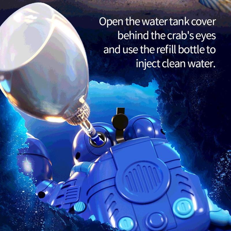 Q227 Fjernstyrt mekanisk krabbe-robot for barn - 2,4 GHz fjernstyrt leketøy med bobler og vannsprut, LED-lys, musikk og 360°-rotasjon