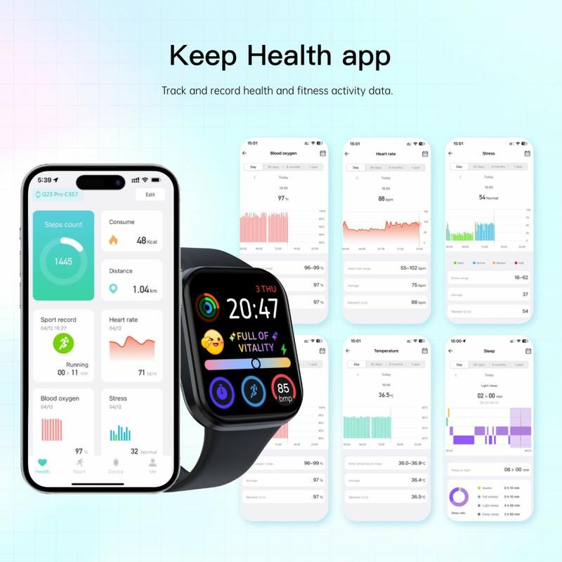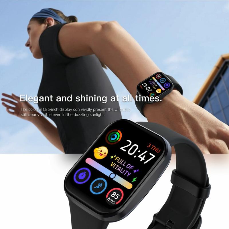 Q23Pro smartklokken har en stor 1.83-tommers fargeskjerm, jevn ytelse og pålitelig helse- og treningssporing for daglig bruk. Den er designet med et slankt integrert hus og 3D-buet glass, og støtter Bluetooth-samtaler, musikkontroll og over 100 tilpassbare urskiver. Med lang batterilevetid, omfattende helseovervåking og bred kompatibilitet med Android og iOS, er dette en praktisk smartklokke for å holde kontakten og være aktiv.