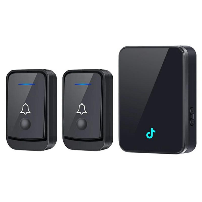 Q502 trådløst dørklokkesett med 2 sendere og 1 mottaker - 433 MHz dørklokke, 45 ringetoner, IP44-vanntett, rekkevidde på 150-200 m