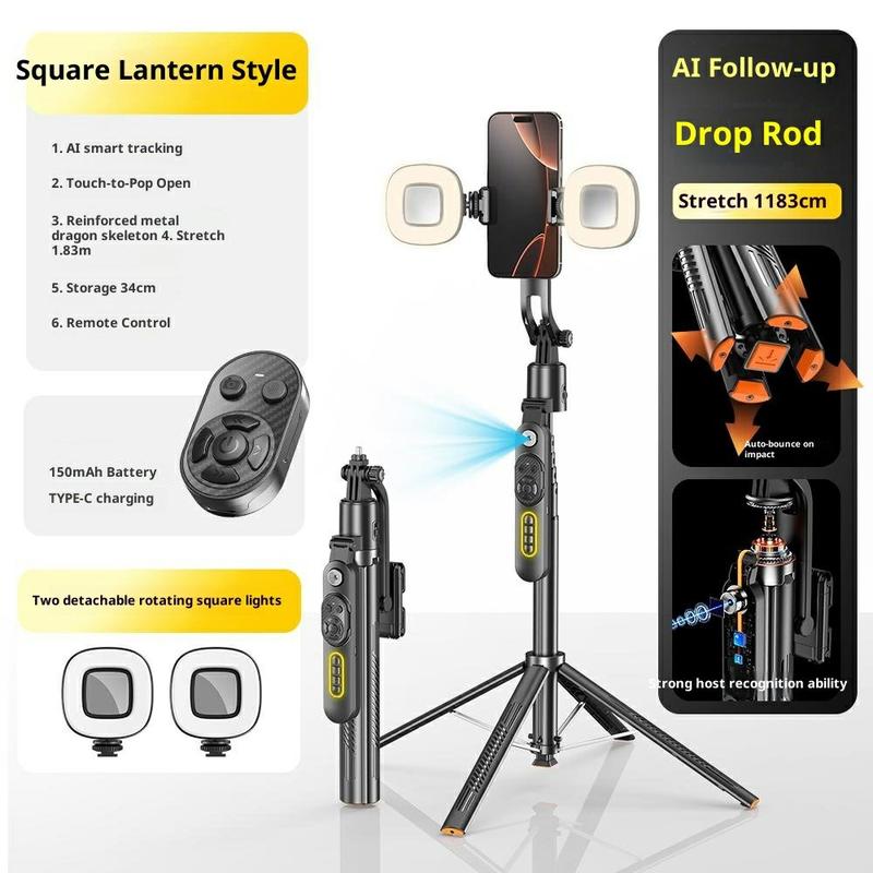 Q625 Bluetooth AI-sporing firbenet stativ selfiestang - to H-formede påfyllingslys, anti-rystelser, fjernkontroll