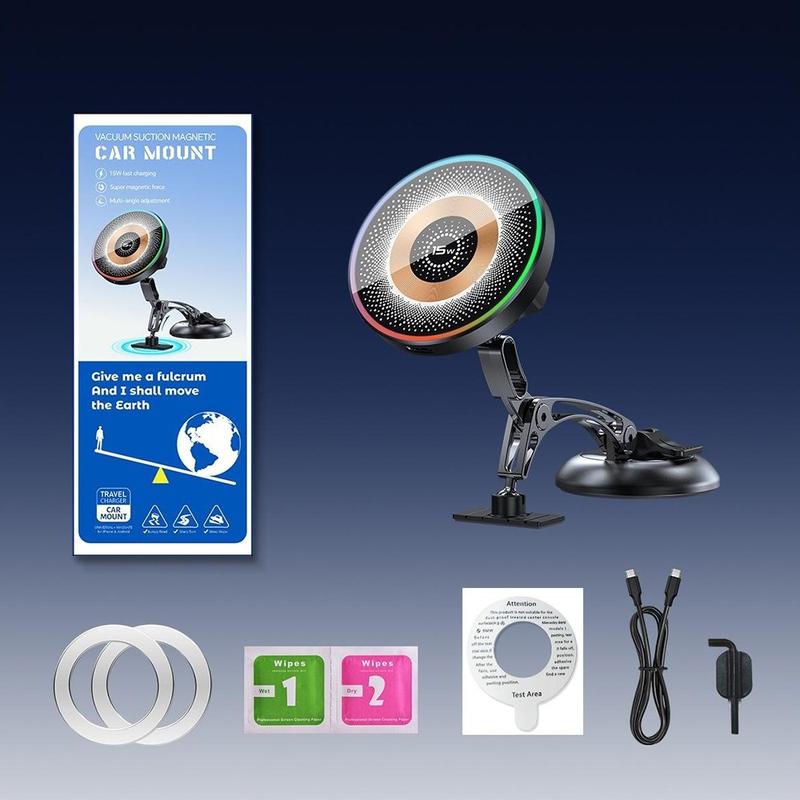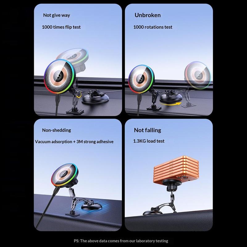 QH-AKD248 er utviklet for å holde telefonen din ladet, stabil og lett å se mens du kjører. Den kombinerer en kraftig magnetholder med 15 W trådløs lading, slik at du raskt kan feste telefonen og lade den samtidig. Vakuumfestet er laget for pålitelig bruk på dashbordet eller frontruten, noe som gir deg et ryddigere og mer praktisk oppsett i bilen.