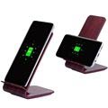 Med denne mobilholderen med rask ladings Qi trådløs lader, kan du raskt lade opp enheten din uten rotete ledninger overalt. Denne trådløse laderen er lagd av høykvalitets materialer og er veldig lett å bruke, den kan også brukes som et støttende stativ med en behagelig visningsposisjon. Ladestativet har en design med en dobbel kveil som sørger for en høyeffektiv ladeposisjon. Den stilige og multifunksjonelle designen vil komplettere looken til skrivebordet ditt.
