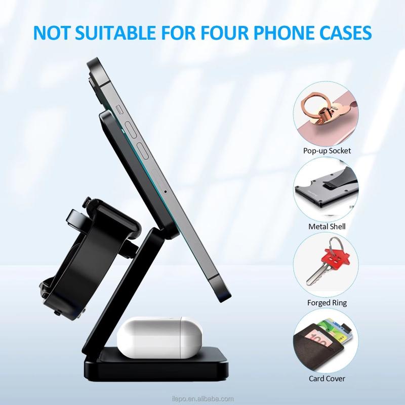 - 3-i-1 trådløs lading for telefon, Apple Watch og ørepropper