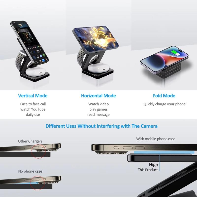 Denne laderen forenkler den daglige ladingen ved å kombinere tre ladesoner i ett sammenleggbart stativ. Qi2-magnetisk justering gjør det enklere og mer effektivt å lade kompatible telefoner, mens de innebygde beskyttelsesfunksjonene gir trygghet. Et smart valg for alle som ønsker et renere oppsett hjemme og en kompakt ladeløsning for reiser.