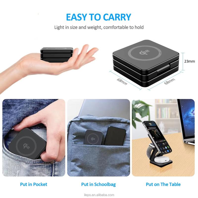 Denne sammenleggbare magnetiske Qi2 3-i-1 trådløse laderen er designet for å holde de daglige enhetene dine med strøm i ett rent og plassbesparende oppsett. Den lader telefonen, Apple Watch og trådløse ørepropper samtidig, noe som reduserer kabelrotet på skrivebordet eller nattbordet. Den sterke magnetiske innrettingen holder kompatible telefoner sikkert plassert for effektiv lading, mens den sammenleggbare designen gjør den enkel å pakke med seg på reise eller oppbevare når den ikke er i bruk.