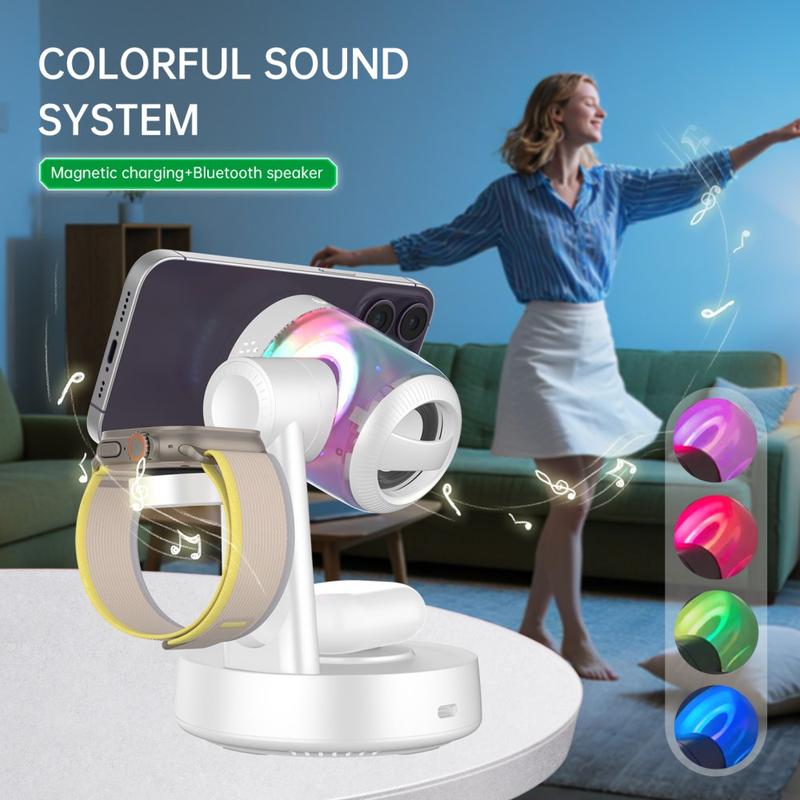 QI2.2 25W magnetisk trådløs ladestasjon med Bluetooth-høyttaler og RGB-belysning - 3-i-1 lader for telefon, ørepropper og smartklokke