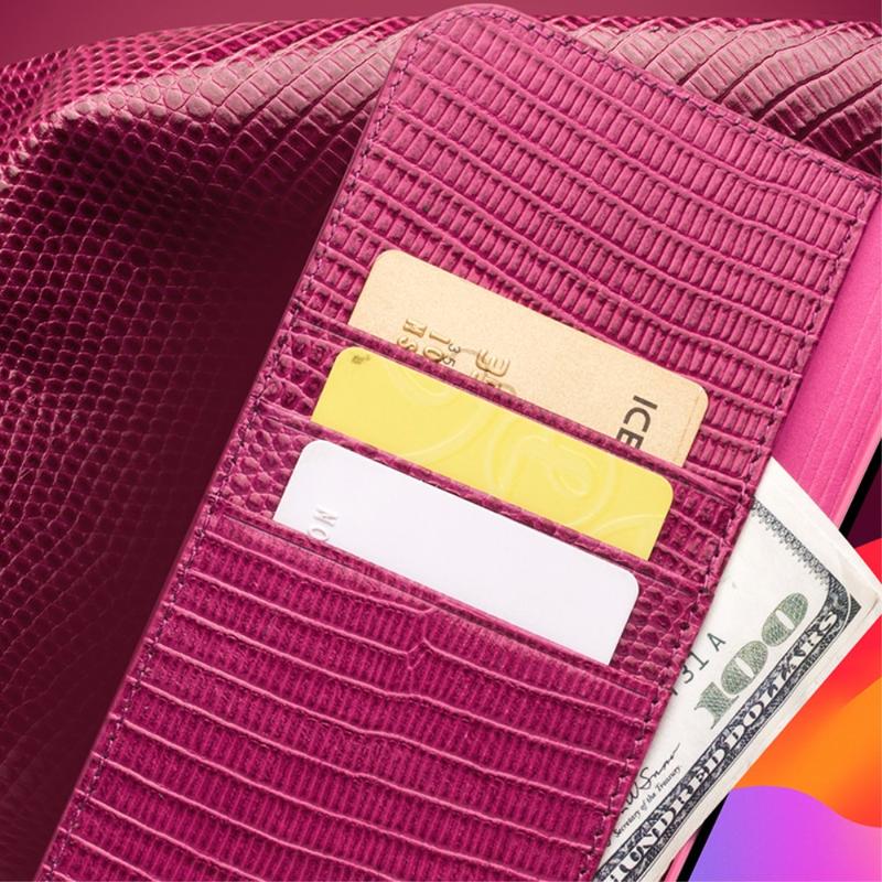 - Holder kortene og kontantene dine på plass, takket være tre kortspor og en lomme