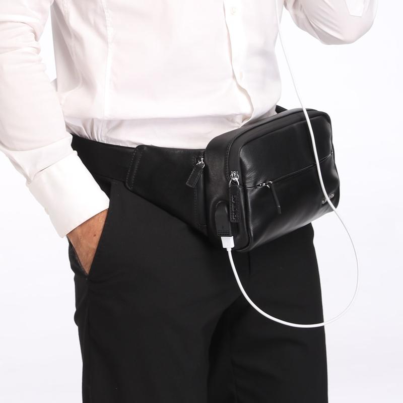 - Integrert USB-gjennomføring gjør det mulig å lade diskret med en powerbank inne i vesken