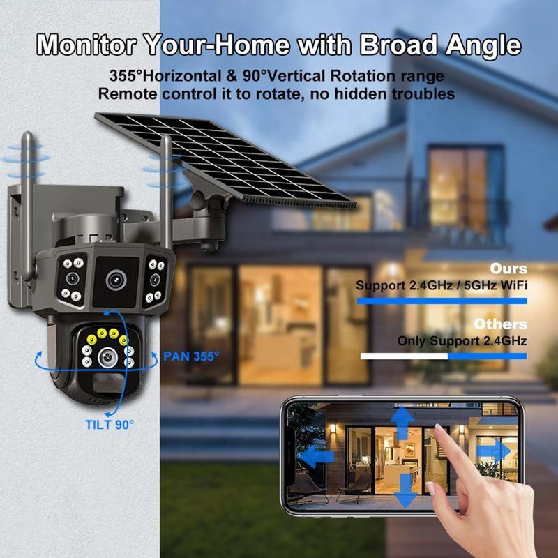Sikre uteområder med bred dekning og færre blinde flekker ved hjelp av QL18 solcelledrevet sikkerhetskamera med dobbeltlinse. Kameraet er designet for enkel trådløs oppsett på 2,4 GHz WiFi, og kombinerer to linser med PTZ-kontroll, slik at du kan overvåke viktige områder og justere visningen eksternt når det oppdages aktivitet. 2K-oppløsningen (2560 x 1440) gir skarpere detaljer for innganger, hager, frukthager og arbeidsplasser, mens H.265-komprimering hjelper deg med å spare lagringsplass uten å ofre klarheten.