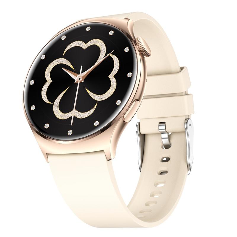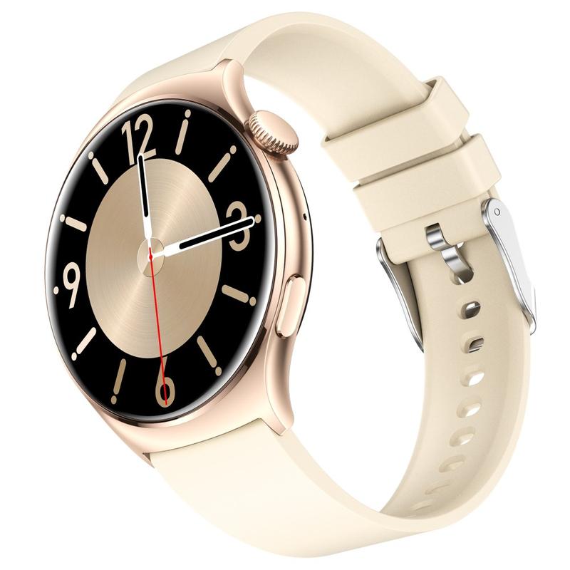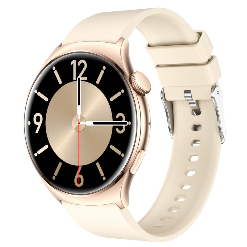 QX10 Smartklokke med 1,43" AMOLED-skjerm og Bluetooth-oppringing og helseovervåking - Beige/gull