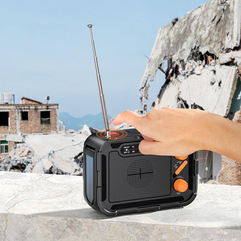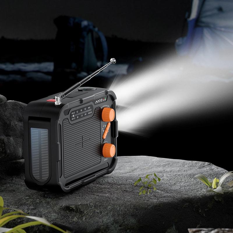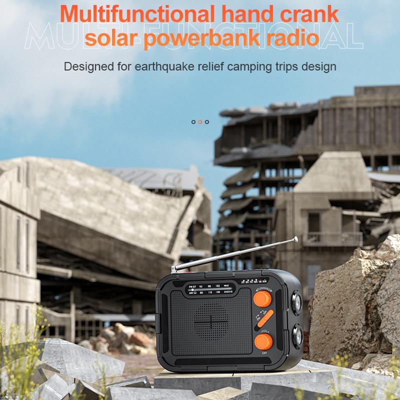 R-N31 Solar nødradio med håndsveiv, strømbank 5000mAh, LED-lommelykt, FM/AM-radiomottak