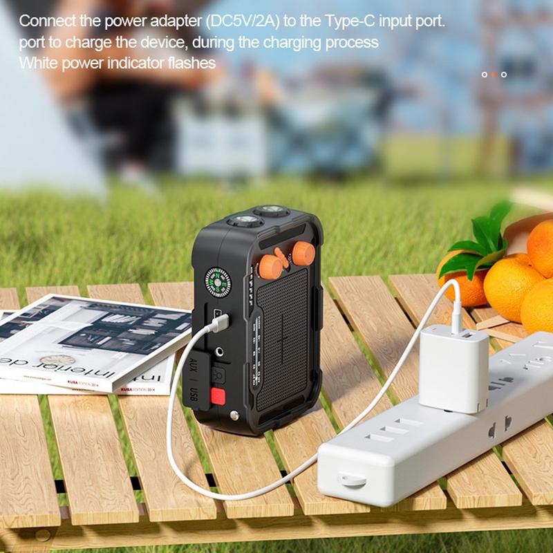 Hold deg forberedt og tilkoblet uansett hvor du ferdes med R-N31 Outdoor Emergency Power Bank. Denne multifunksjonsenheten kombinerer et 5000mAh reservebatteri, en håndsveivgenerator og en solcellelader, og sørger for at du kan lade opp viktig elektronikk under utendørsopplevelser eller uventede strømbrudd. R-N31 er bygget for å tåle ulike miljøer, og har en innebygd radio som gir deg oppdaterte nyheter, værvarsler og underholdning når du er på farten.
