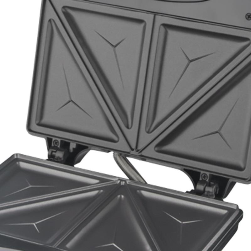 Begge platene varmes opp samtidig, slik at smørbrødene blir jevnt brunet på begge sider uten å måtte vendes manuelt. Nyt sprø kanter med mykt, varmt fyll inni.