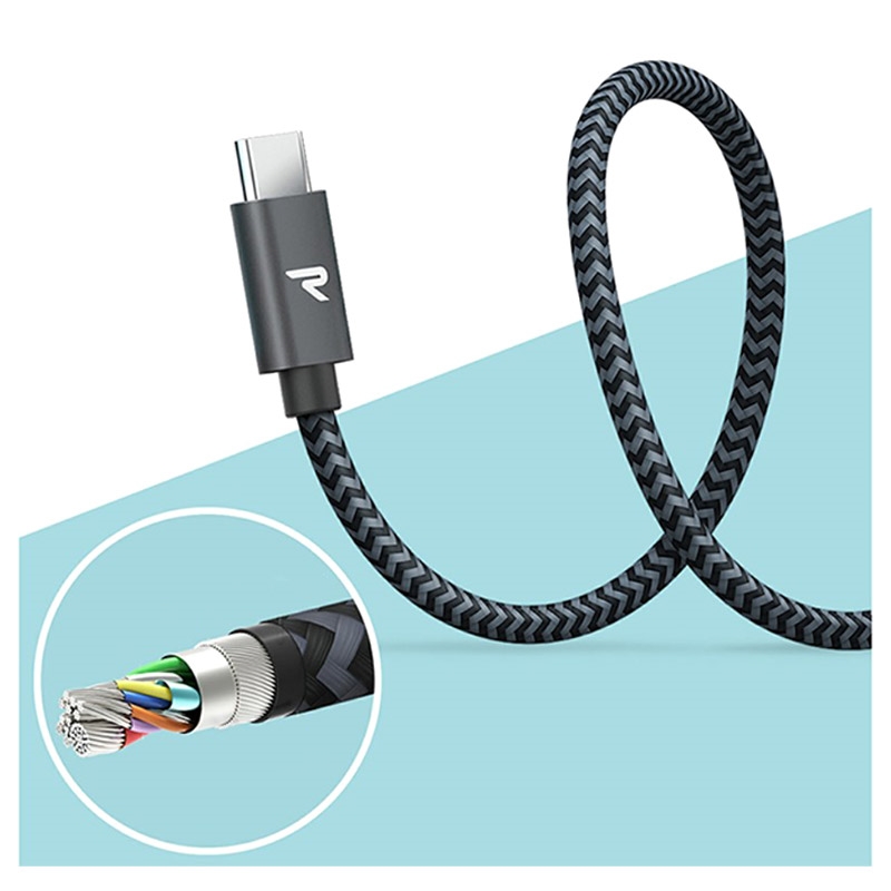 Rampow T04 Nylonflettet USB-C Kabel - Quick Charge 3.0, 5Gbps, 3A - 2m