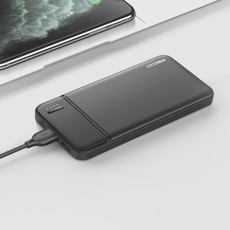 Recci RPB-N16C 10000mAh ultraslank Powerbank - bærbar lader med dobbel USB-utgang