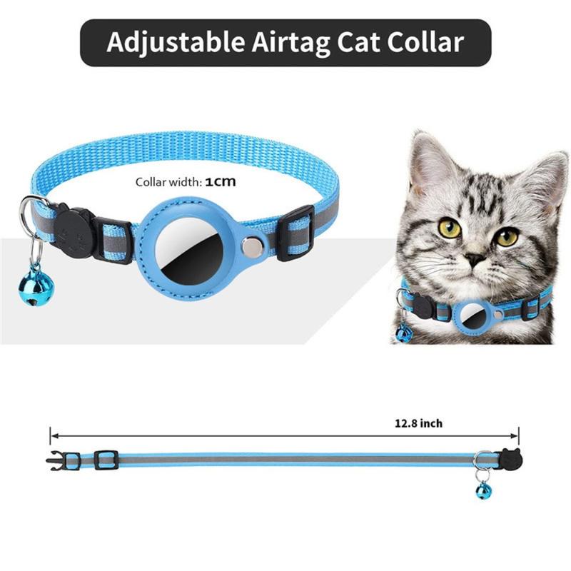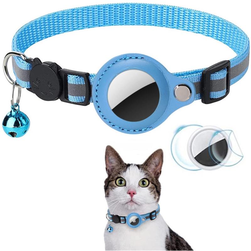 Reflekterende halsbånd med AirTag 1/2-holder og bjelle - passer til katter og små hunder