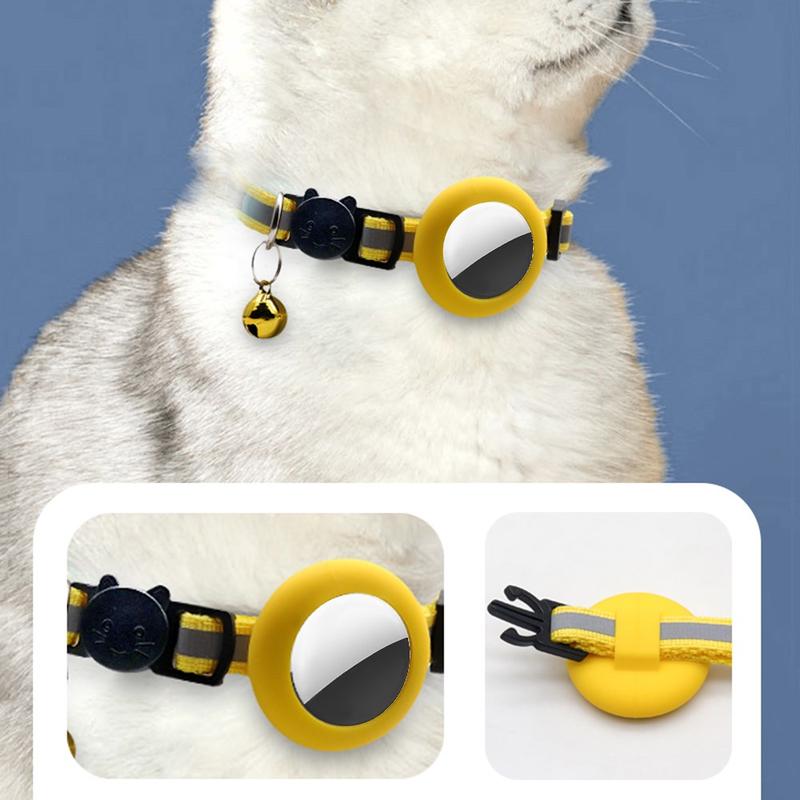 Reflekterende halsbånd med bjelle for hund/katt og AirTag 1/2-silikonetui med beskyttelsesfilm