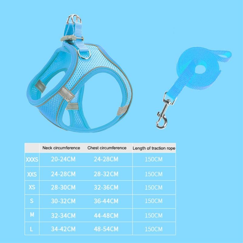 Reflekterende sele med bånd for katt/hund / pustende nettingvest for kjæledyr