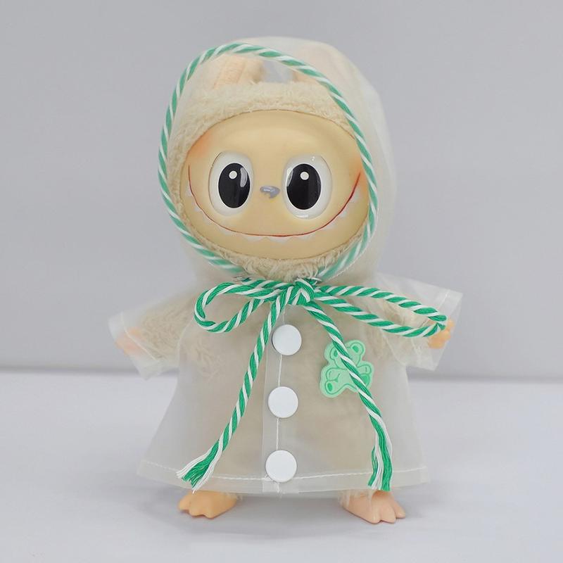 Regnfrakk med hette og bjørnetrykk til Labubu Doll 17cm
