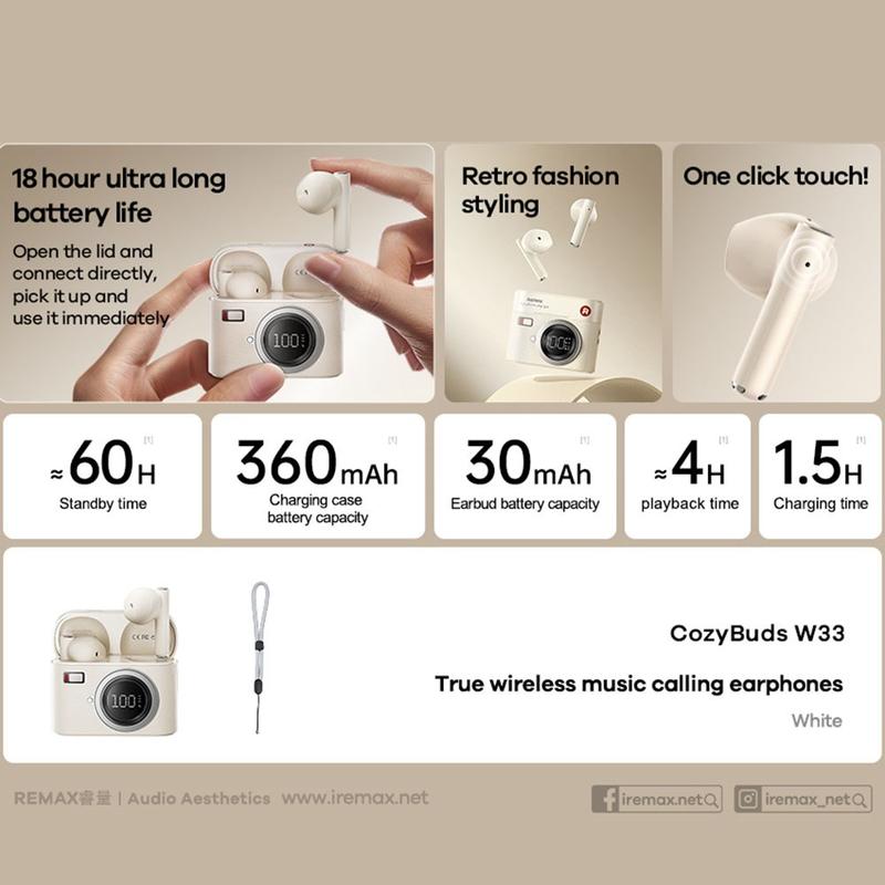 Få en bedre lydopplevelse med Remax CozyBuds W33 True Wireless Earbuds, som er designet for å oppfylle kravene til en moderne livsstil.
