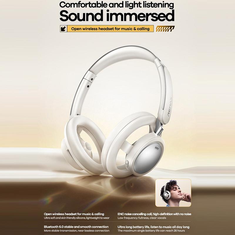 Remax RB-870 Trådløse hodetelefoner - Bluetooth 6.0, ENC-støyreduksjon, USB-C-lading, 30 timers taletid (10 m rekkevidde)