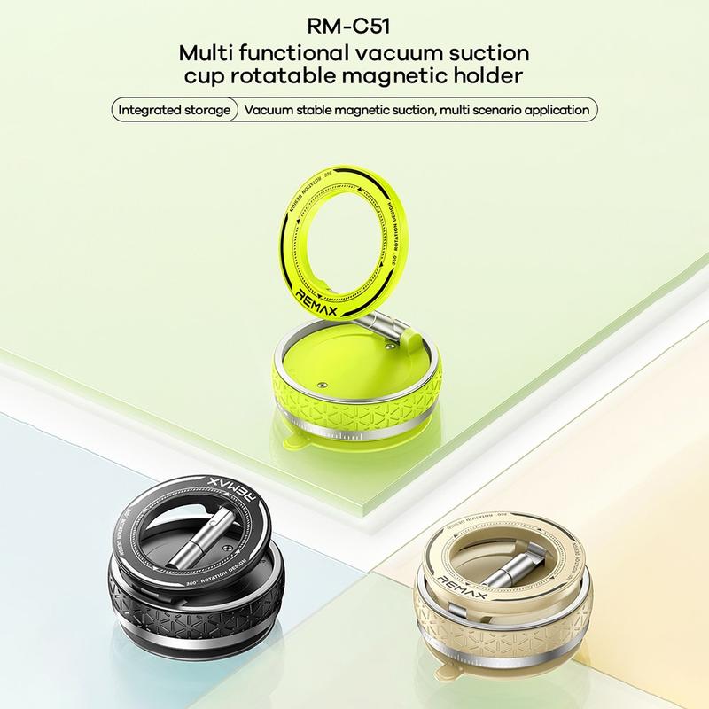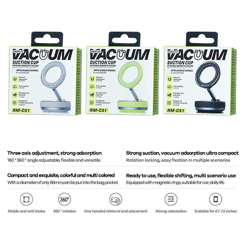 REMAX RM-C51 3-akset magnetisk telefonholder - vakuumlåst sugekoppholder for bil, hjem og reise